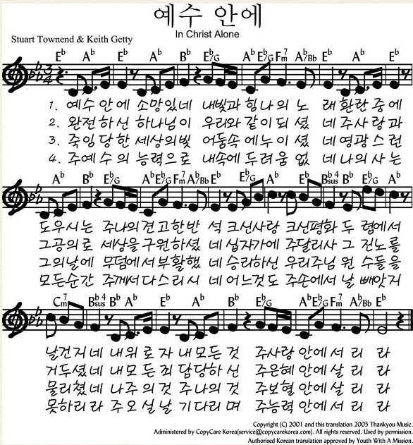 1. 예수 안에 소망있네 내 빛과 힘 나의 노래 환란 중에 도우시는 주 나의 견고한 반석