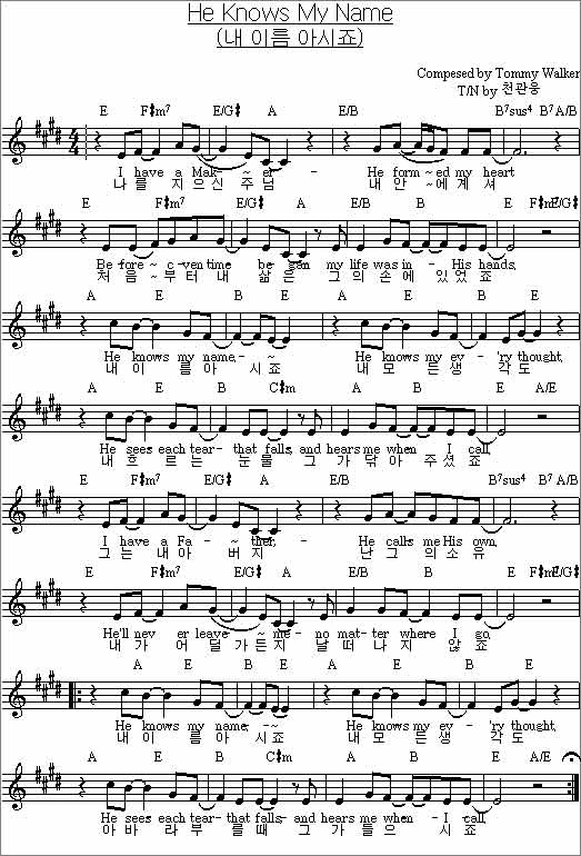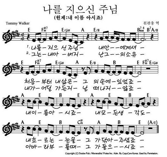 내 이름 아시죠(나를 지으신 주님)