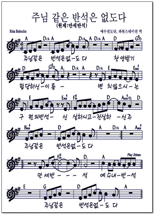 만세반석 예수 내 반석 주님같은 반석은 없도다