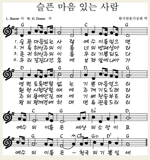 1. 슬픈 마음 있는 사람 예수 이름 믿으면