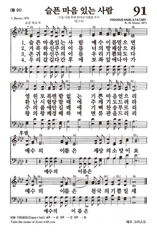 우리가 부르는 "Take the name of Jesus with you"(슬픈 마음 있는 사람)(91장)라는