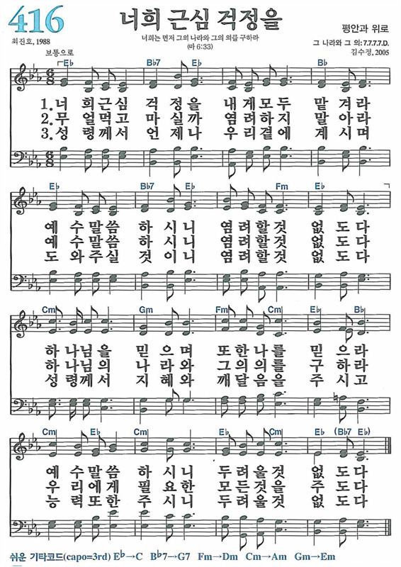 찬송가 416장 너희근심걱정을 작성자7교구카페운영자|작성시간19.11.05|조회수605 목록 댓글 0 글자크기 작게가 글자크기 크게가 찬송가 416장 너희근심걱정을 <유튜브 찬송영상>https://www.youtube.com/watch?v=U2yzUV7JrwQ 다음검색 현재 게시글 추가 기능 열기 북마크 공유하기 신고 센터로 신고 댓글 댓글 0 댓글쓰기 답글쓰기 댓글 리스트