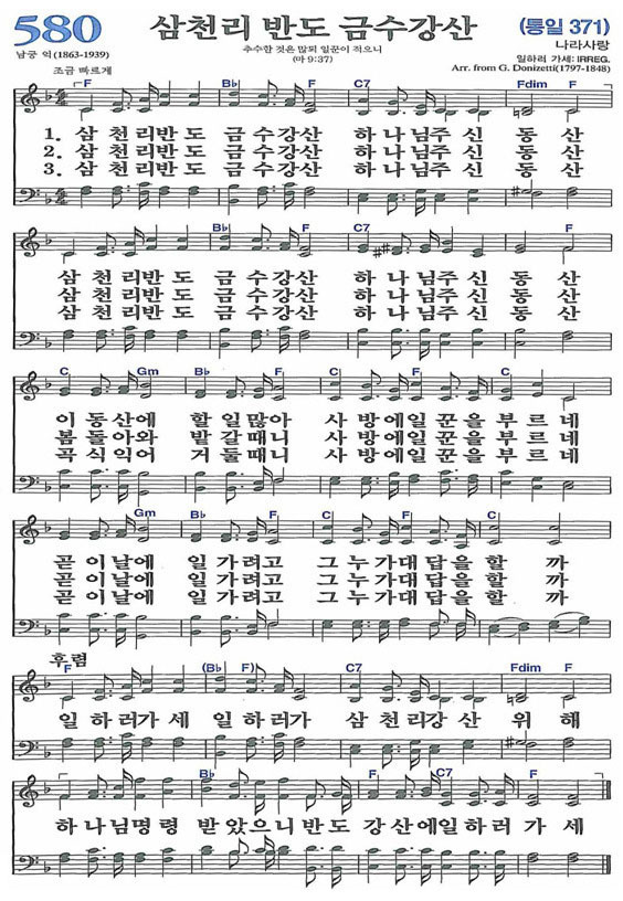 찬송가 580장(통371)삼천리 반도 금수강산 작성자7교구카페운영자|작성시간21.06.12|조회수343 목록 댓글 0 글자크기 작게가 글자크기 크게가 찬송가 580장(통371)삼천리 반도 금수강산 <유튜브 찬송영상>https://www.youtube.com/watch?v=cad0APU247w 다음검색 현재 게시글 추가 기능 열기 북마크 공유하기 신고 센터로 신고 댓글 댓글 0 댓글쓰기 답글쓰기 댓글 리스트