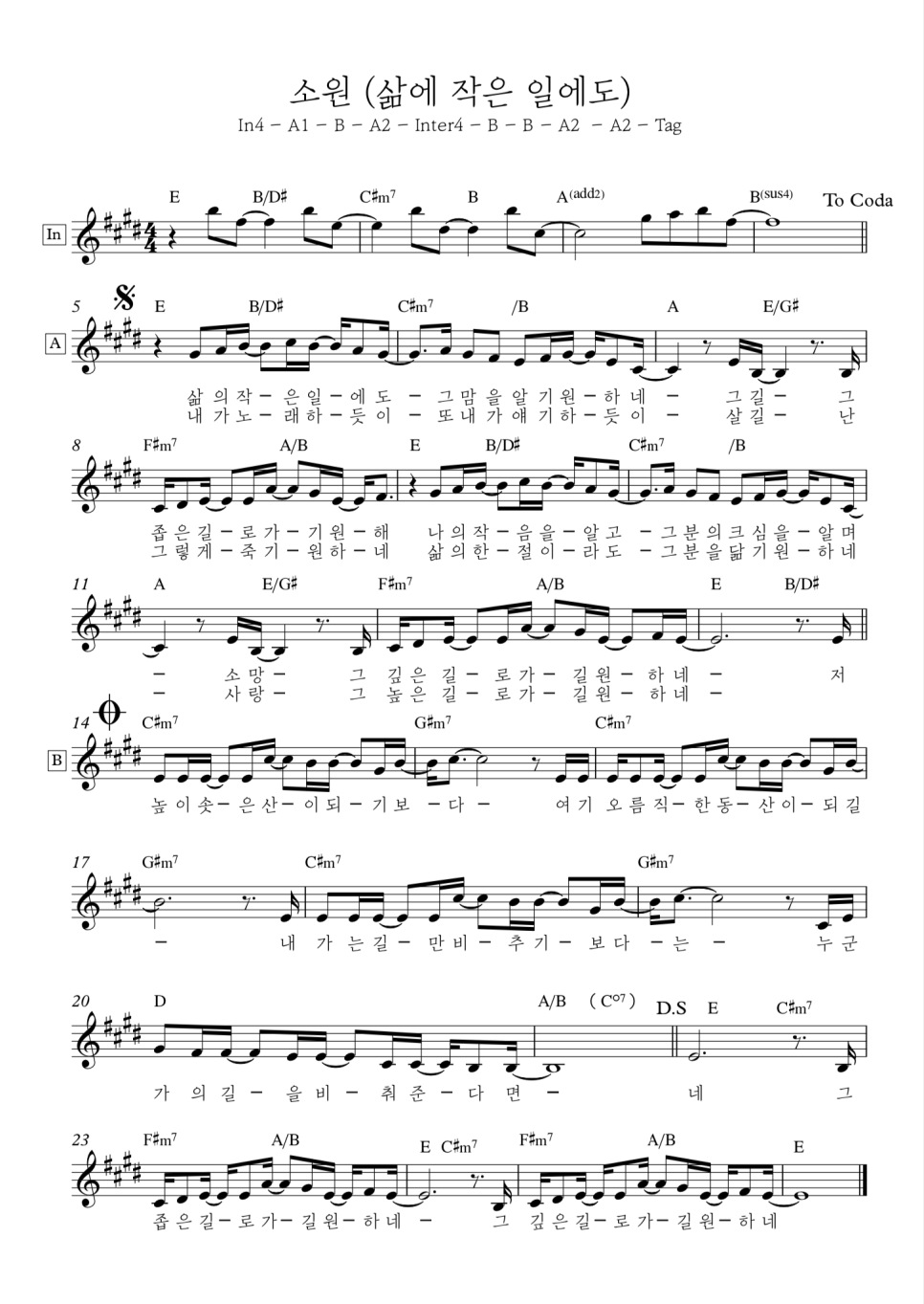 삶의 작은 일에도 그맘을 알기 원하네 그길 그 좁은 길로 가기원해