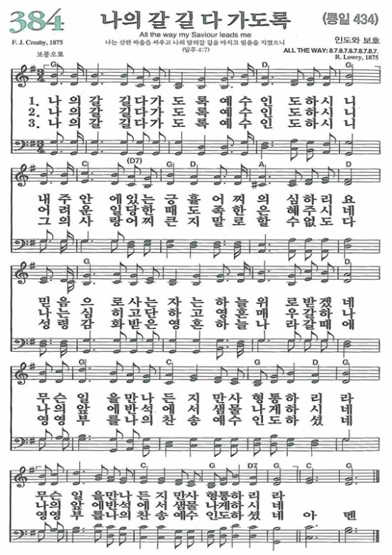 *찬송가 384장(통434) 나의 갈길 다 가도록