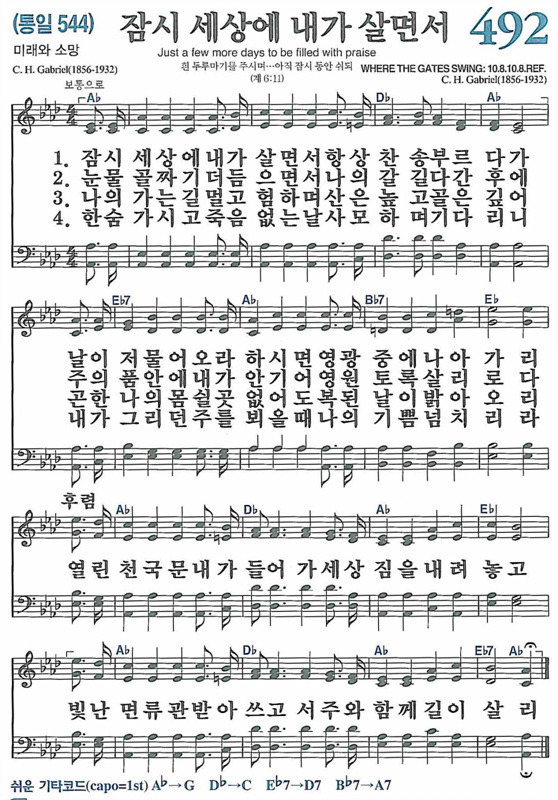 찬송가 492장(통544) 잠시 세상에 내가 살면서