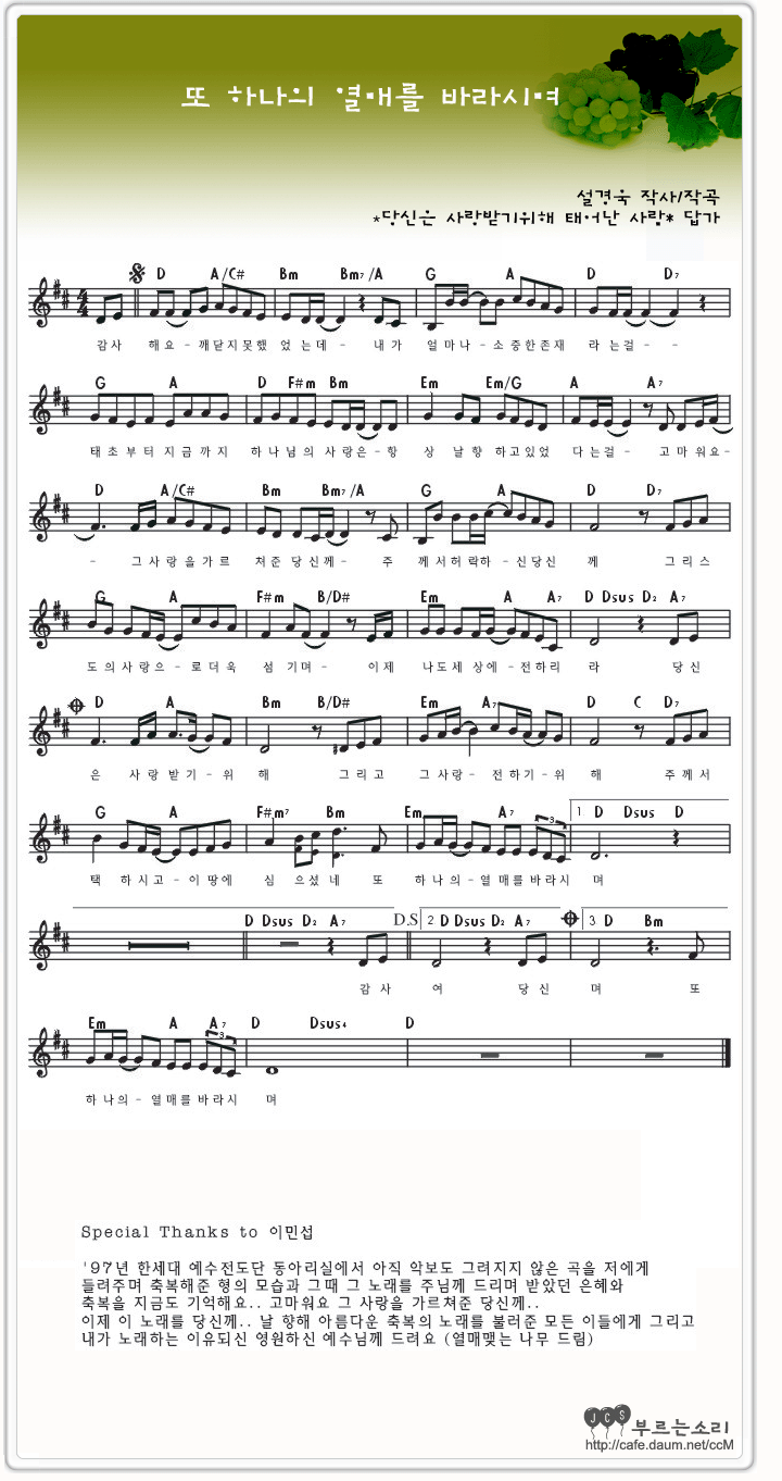 이땅에 심으셨네 또 하나의 열매를 바라시며