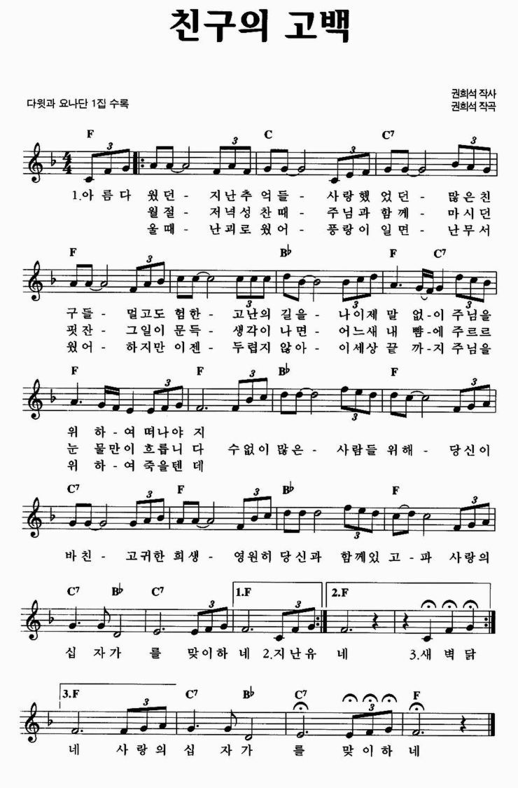 친구의고백 / 아름다웠던 지난 추억들 (가사/악보)