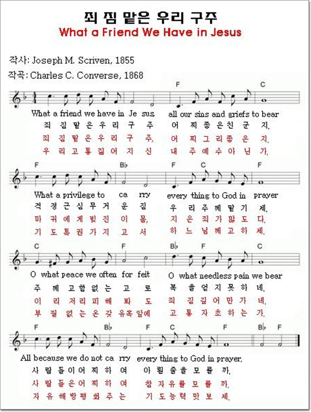 죄짐 맡은 우리 구주 어찌 좋은 친군지