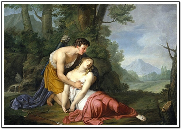 사랑의 시험에 상처받은 프로크리스는 크레타섬으로 가서 수렵의 여신 아르테미스의