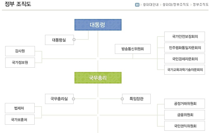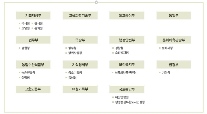 대한민국 정부조직도 및 행정부(부청) 홈페이지