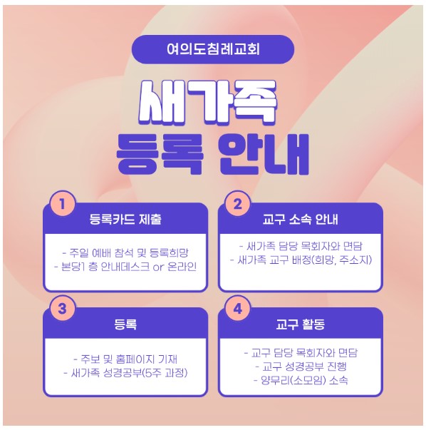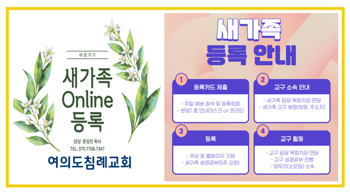 " 여의도침례교회 온라인으로 등록을 하시면 담당자가 안내드립니다."