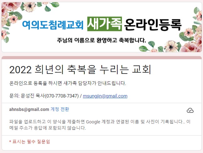 여의도침례교회 새가족등록 (google.com) 바로가기