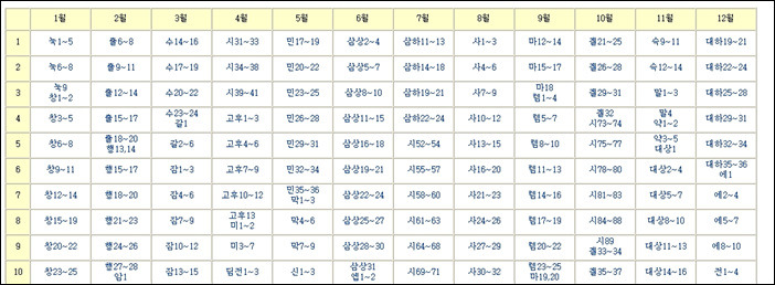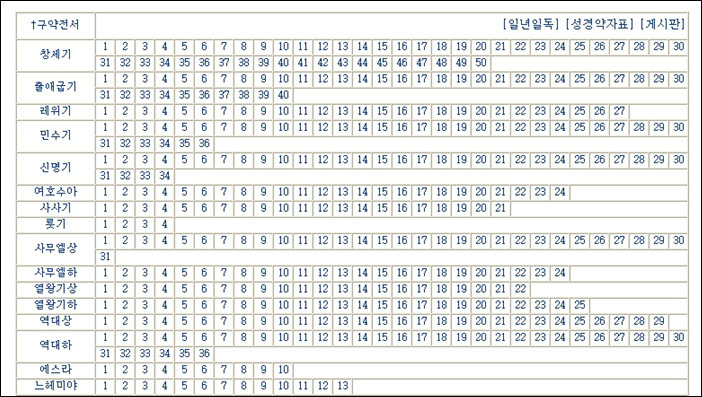 1. 성경읽기 : 색인표 (한눈에 볼 수 있는 표-권별장별)