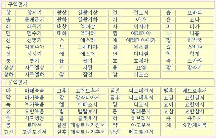 3. 약자표 : 성경을 약자 및 성경장별로 정리한 약자표