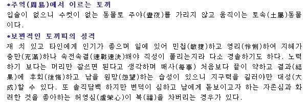 2011년 신묘년 (辛卯年) : 토끼띠의 해 - 토끼 이야기/띠풀이/토끼띠 성격(남녀) 작성자안현상|작성시간10.12.06|조회수241 목록 댓글 0 글자크기 작게가 글자크기 크게가 다음검색 현재 게시글 추가 기능 열기 북마크 공유하기 신고 센터로 신고 댓글 댓글 0 댓글쓰기 답글쓰기 댓글 리스트