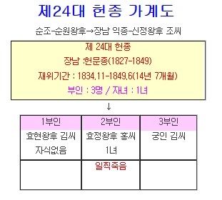 헌종은 효현왕후 김씨를 비롯하여 계비 효정왕후 홍씨, 그리고 후궁 1명을 두었으나 후사가