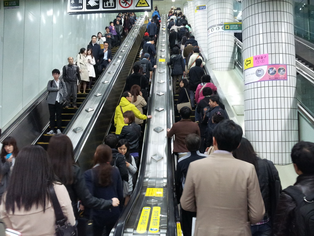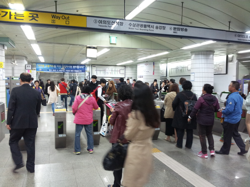 * 5호선 여의나루역내 정경. 약속한 일행을 기다리는 사람들이 역내 곳곳에서 서 있다.