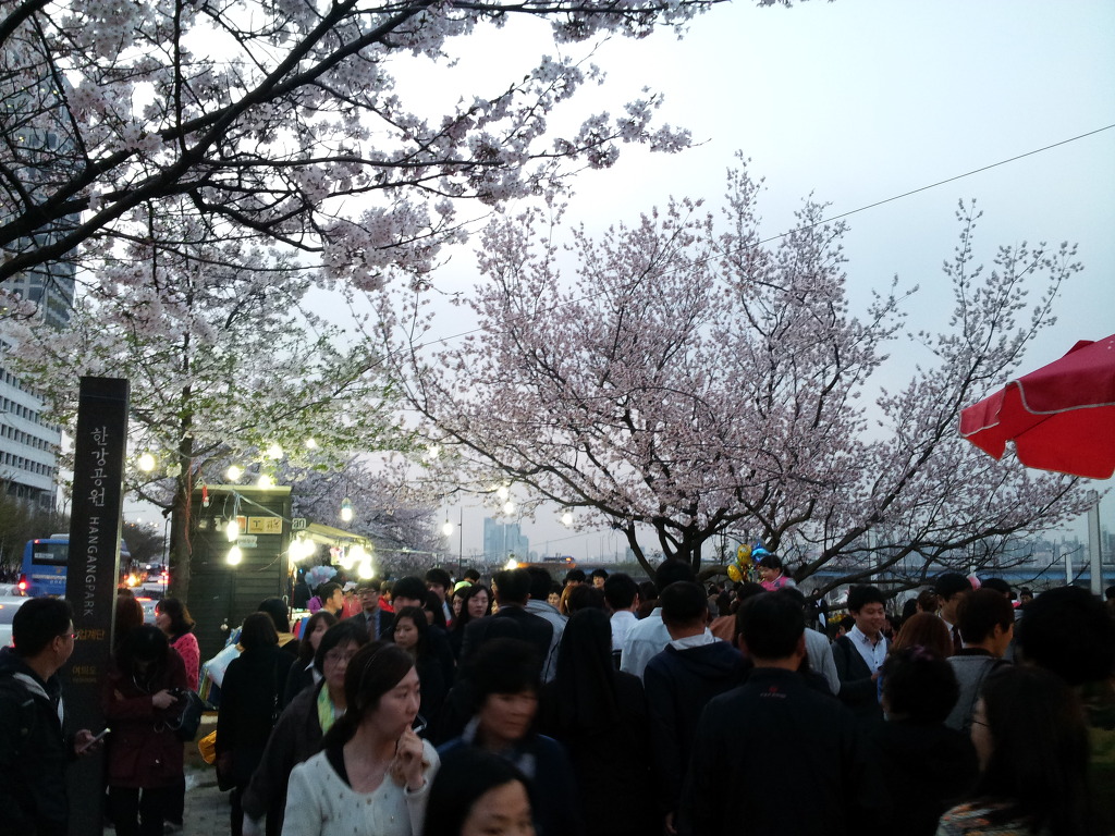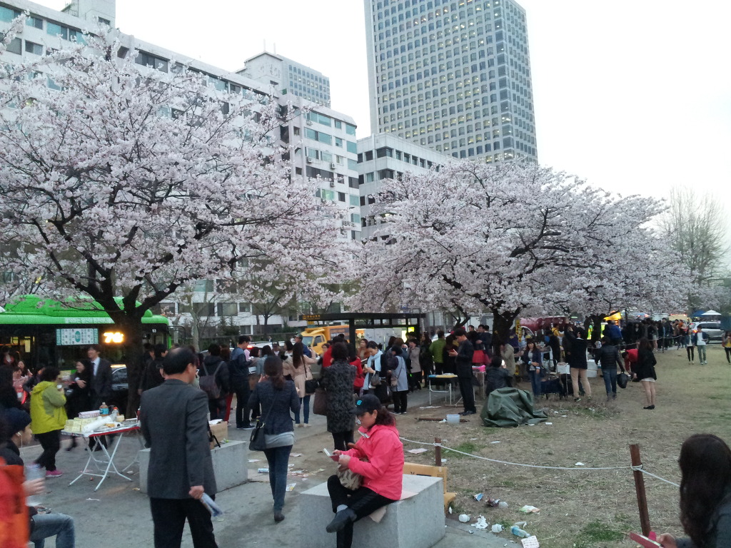 * 오후 7시. 퇴근하는 사람들보다 찾아오는 사람이 더 많은 이유는 벚꽃때문이다.