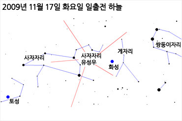 따서 지어진다. 2009년도 사자자리 유성우의 경우.