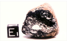 운석(iron meteorite)이다. 실제로 철은 유성체의 구성에서 적은 부분을 차지하고