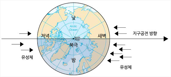 떨어지지만, 새벽녘에는 지구가 지나가는 공간에 머물러 있기만 해도 지구와