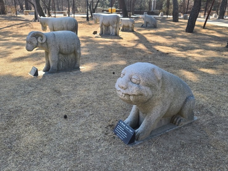 ▼ 왕릉 봉분 수호 석물로 석호, 석양, 석마 각 1쌍씩