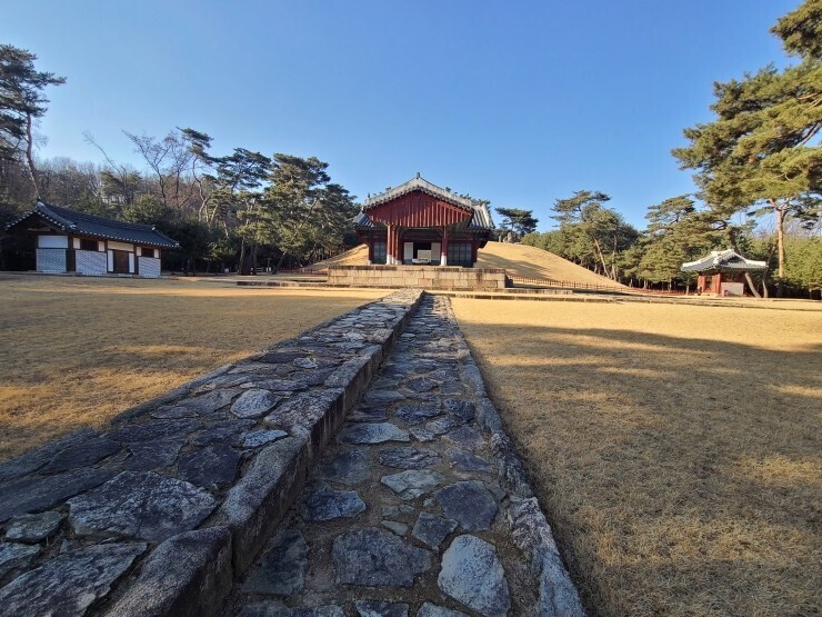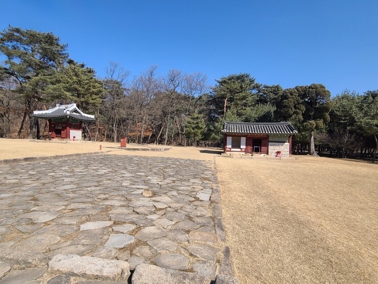 능침 앞의 건물은 제례를 올리는 丁자 모양의 '정자각(丁字閣, '정짜각'으로 발음)'