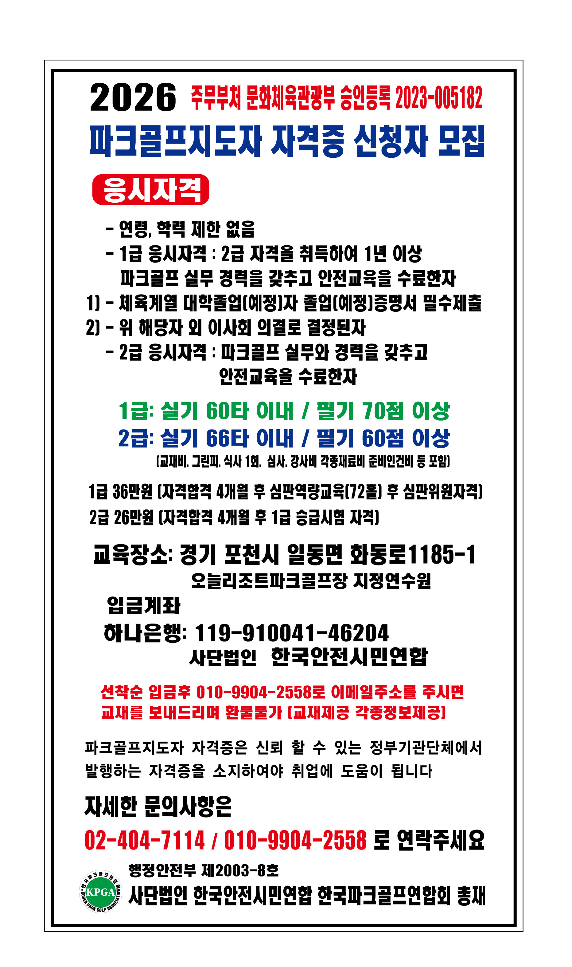 문화체육관광부 파크골프지도자 자격증 승인등록
