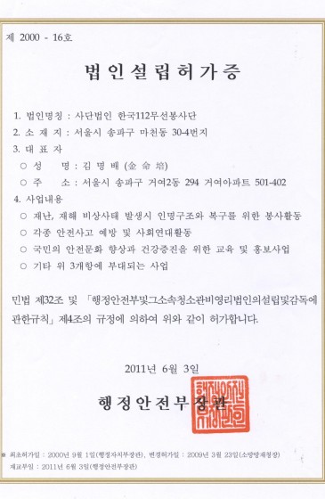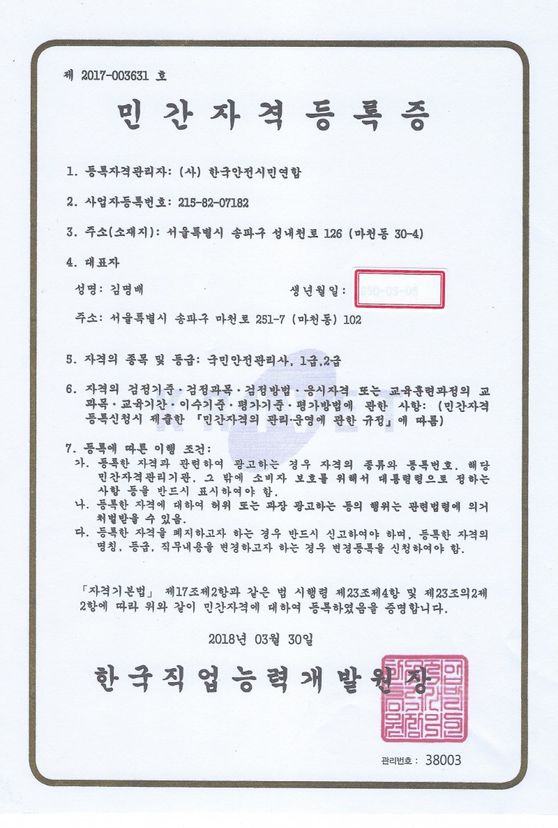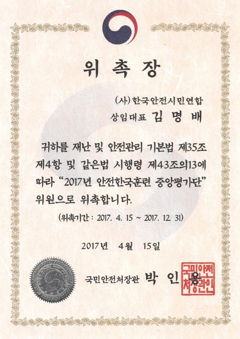 사단법인 한국안전시민연합 상임댸표(대표이사)