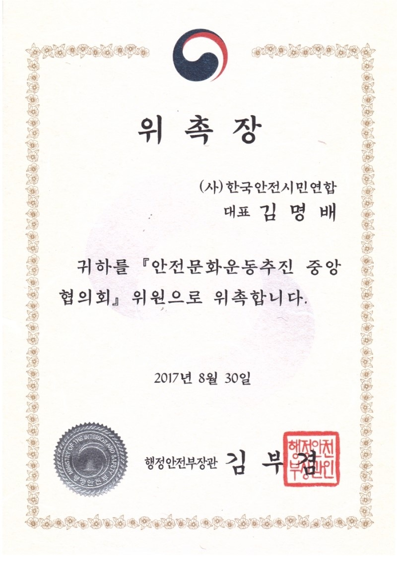 행정안전부 중앙안전관리 민관협력위원회 위원