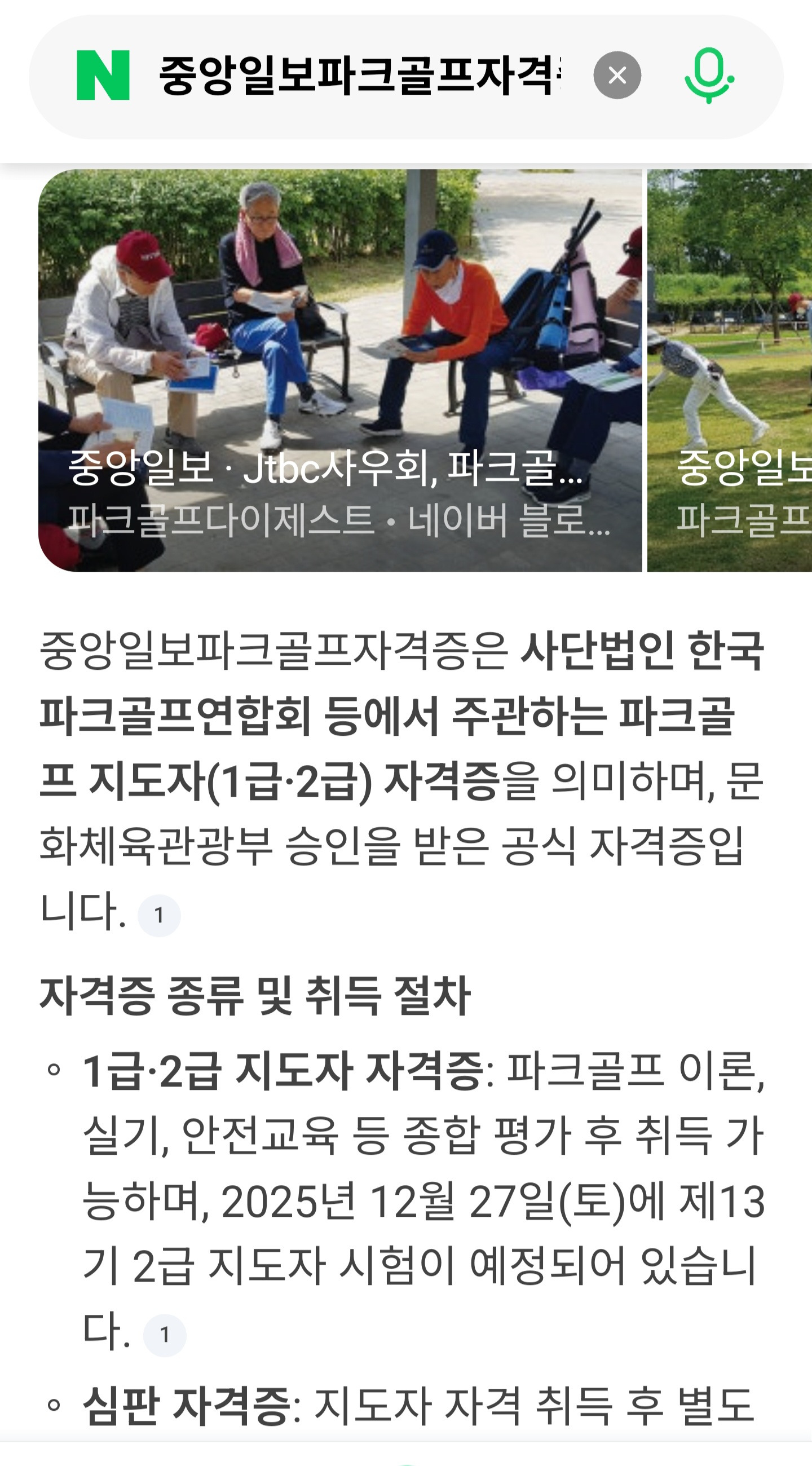 ■ 1. 파크골프지도자 자격증 1급. 2급