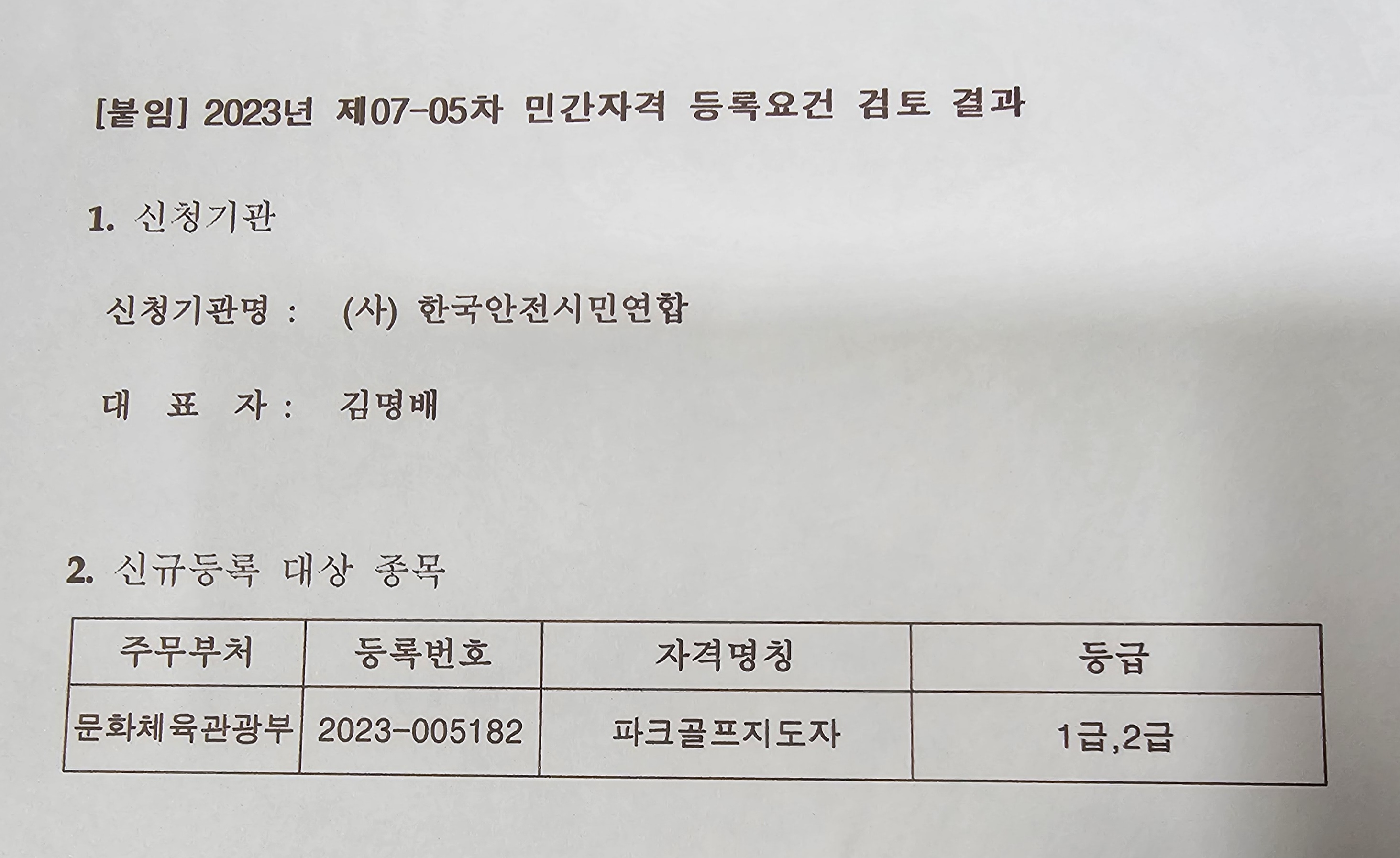 1. 문화체육관광부 승인등록 NO 2023~005182 파크골프지도자 자격증 <파크골프. 건강. 안전 > 대한민국 유일한 골프 안전전문가 특별강사 교육실시 사단법인 한국파크골프연합회 파크골프지도자 1급 . 2급 발급