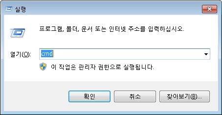 "시작 - 실행" 또는 "윈도우키+R" -> cmd 입력 후 엔터