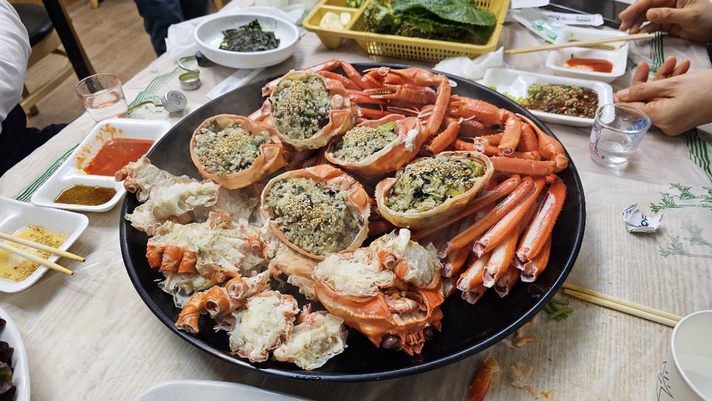 붉은대게찜과 볶음밥까지 한큐에 다 나왔네요.