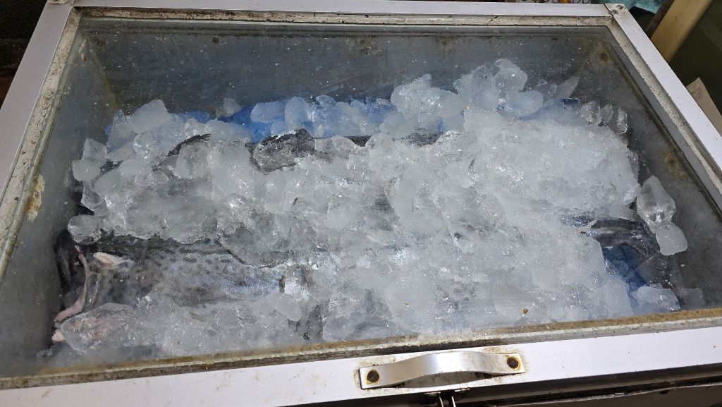 선도가 좋은 횟감용 생선을 얼음에 보관하는 방법인듯 합니다.