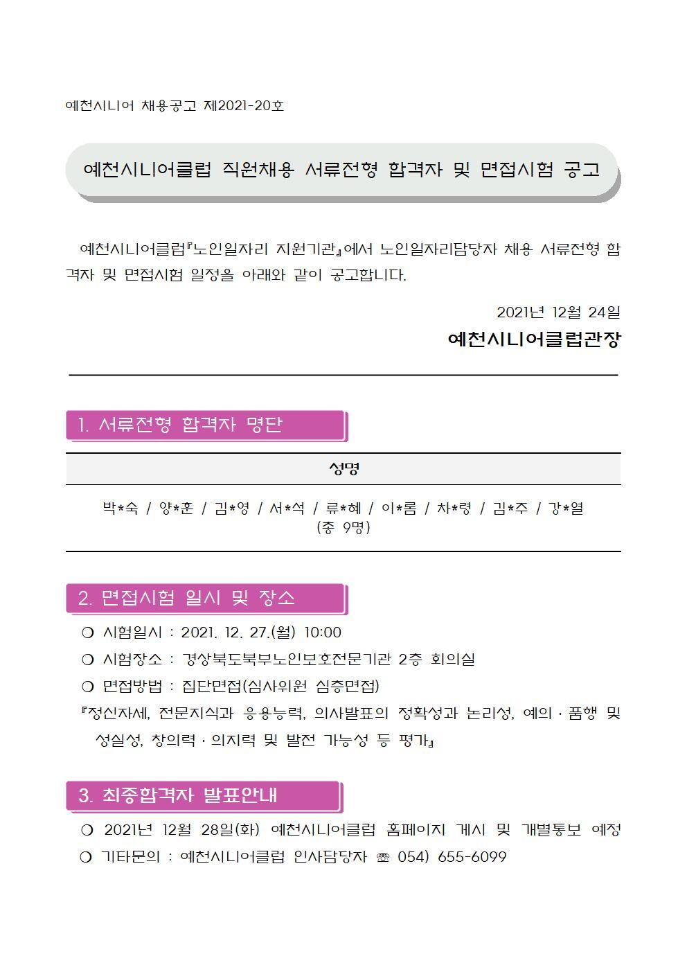 예천시니어클럽 노인일자리담당자 채용 서류전형 합격자 및 면접시험 공고 작성자예천시니어클럽|작성시간21.12.25|조회수478 목록 댓글 0 글자크기 작게가 글자크기 크게가 다음검색 현재 게시글 추가 기능 열기 북마크 공유하기 신고 센터로 신고 댓글 댓글 0 댓글쓰기 답글쓰기 댓글 리스트