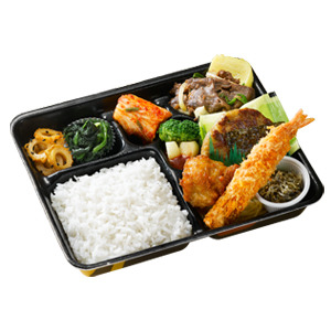 제품설명 : 더욱 신선해진 장미도시락. 한국인이 가장 좋아하는 떡산적, 바삭한 순살돈까스, 치킨, 맛대장, 새로워진 뉴불고기와 함께 섬유질이 풍부한 브로콜리, 구운마늘, 계절별 밑반찬 및 나물류, 계란지단, 김치, 김, 양식소스가 들어간 웰빙 도시락