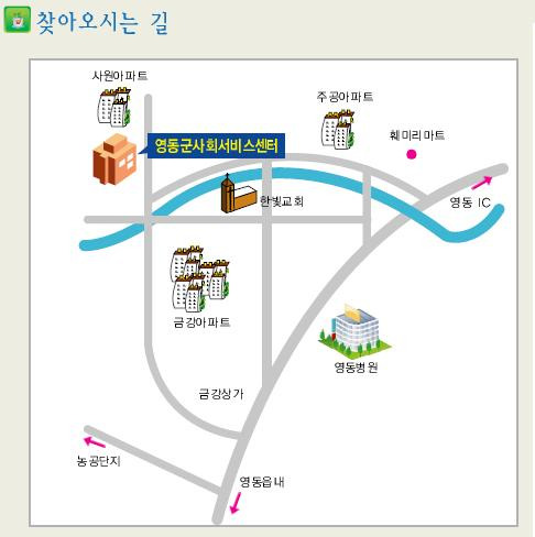 * 교통편: 버스- 용산, 청산 방면(영동병원 앞 하차 후 도보 15분)