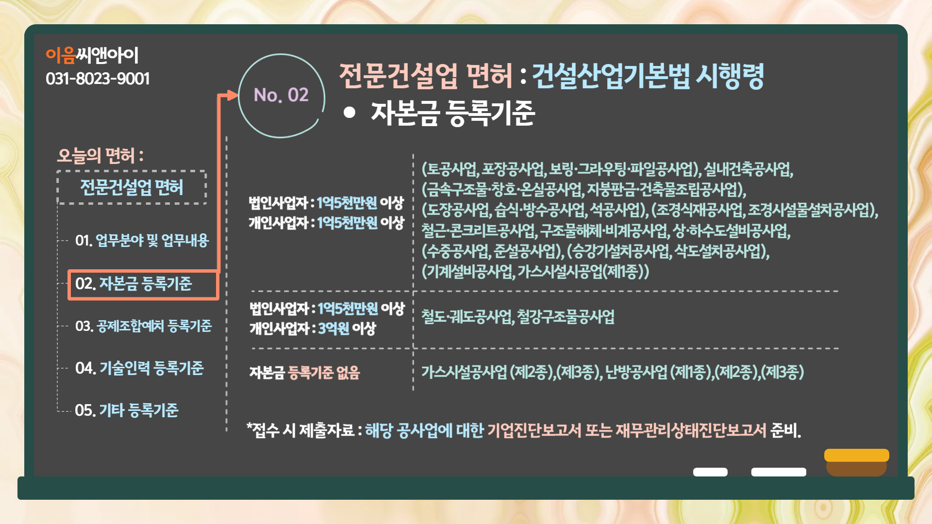 2. 전문건설업면허 : 건설산업기본법 시행령 - 자본금 등록기준