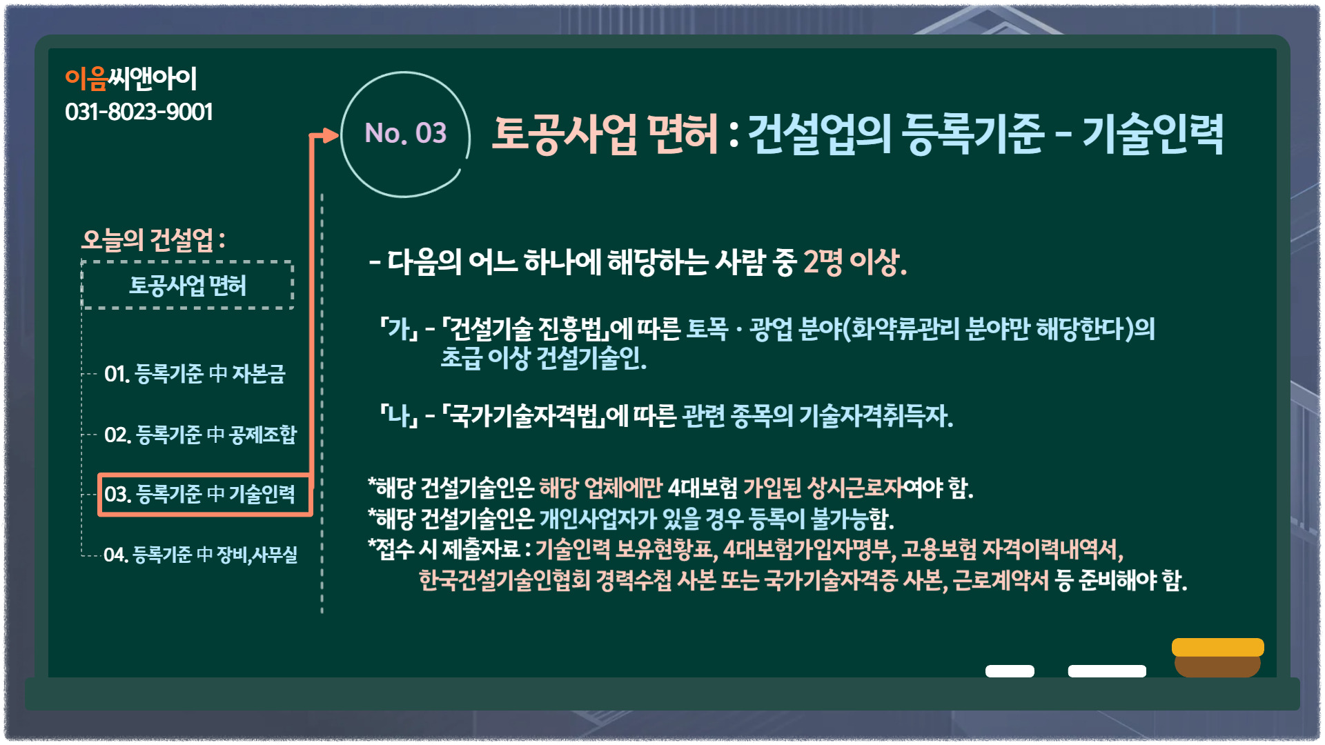 면허 준비를 시작하면서 접수서류 작성이나 등록기준 부합 여부 등에서 헷갈리는 부분이 많으실 텐데요.