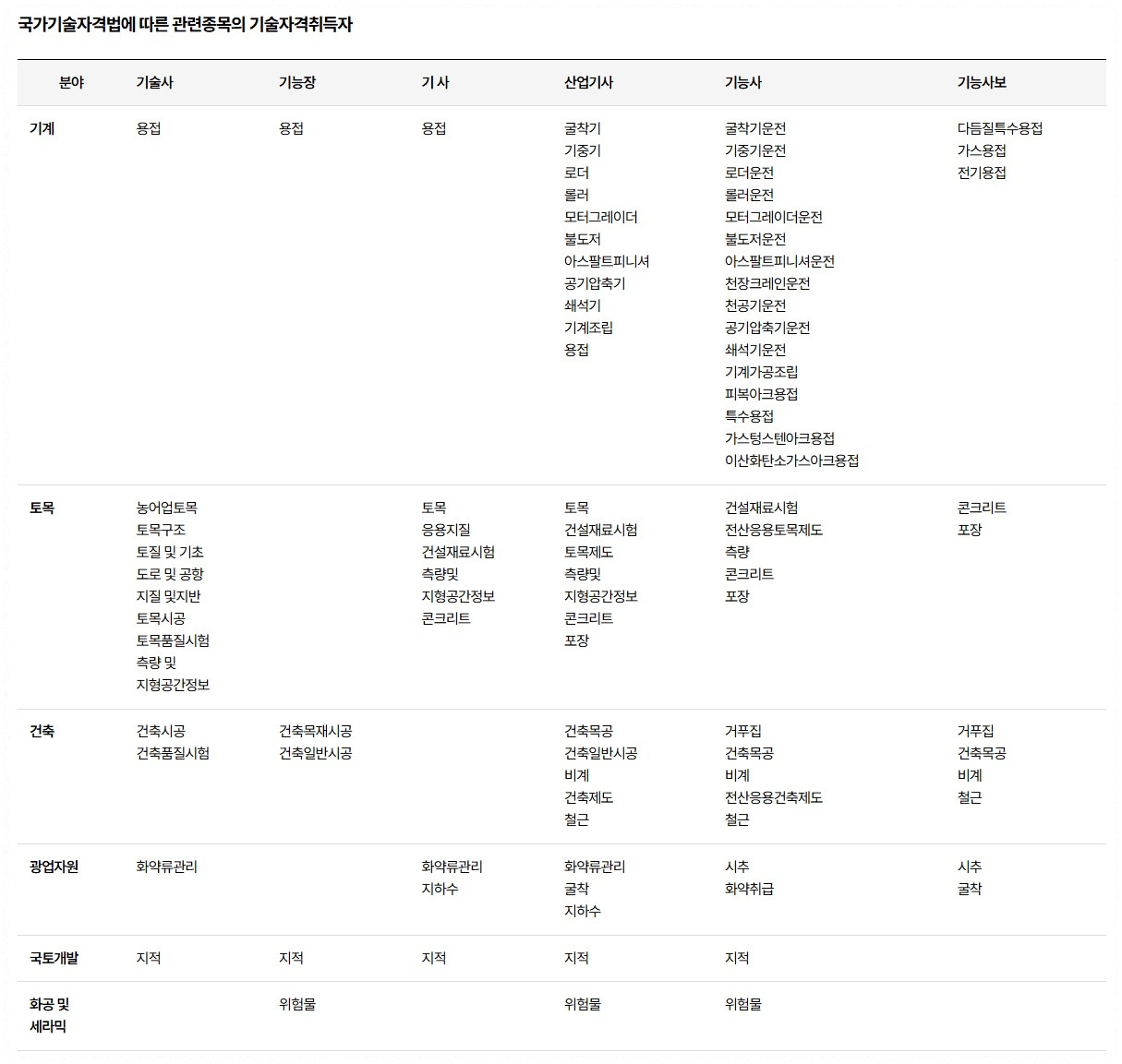 나. 「국가기술자격법」에 따른 관련 종목의 기술자격취득자. [하단의 기술자격 종류 중 하나에 해당하는 사람]