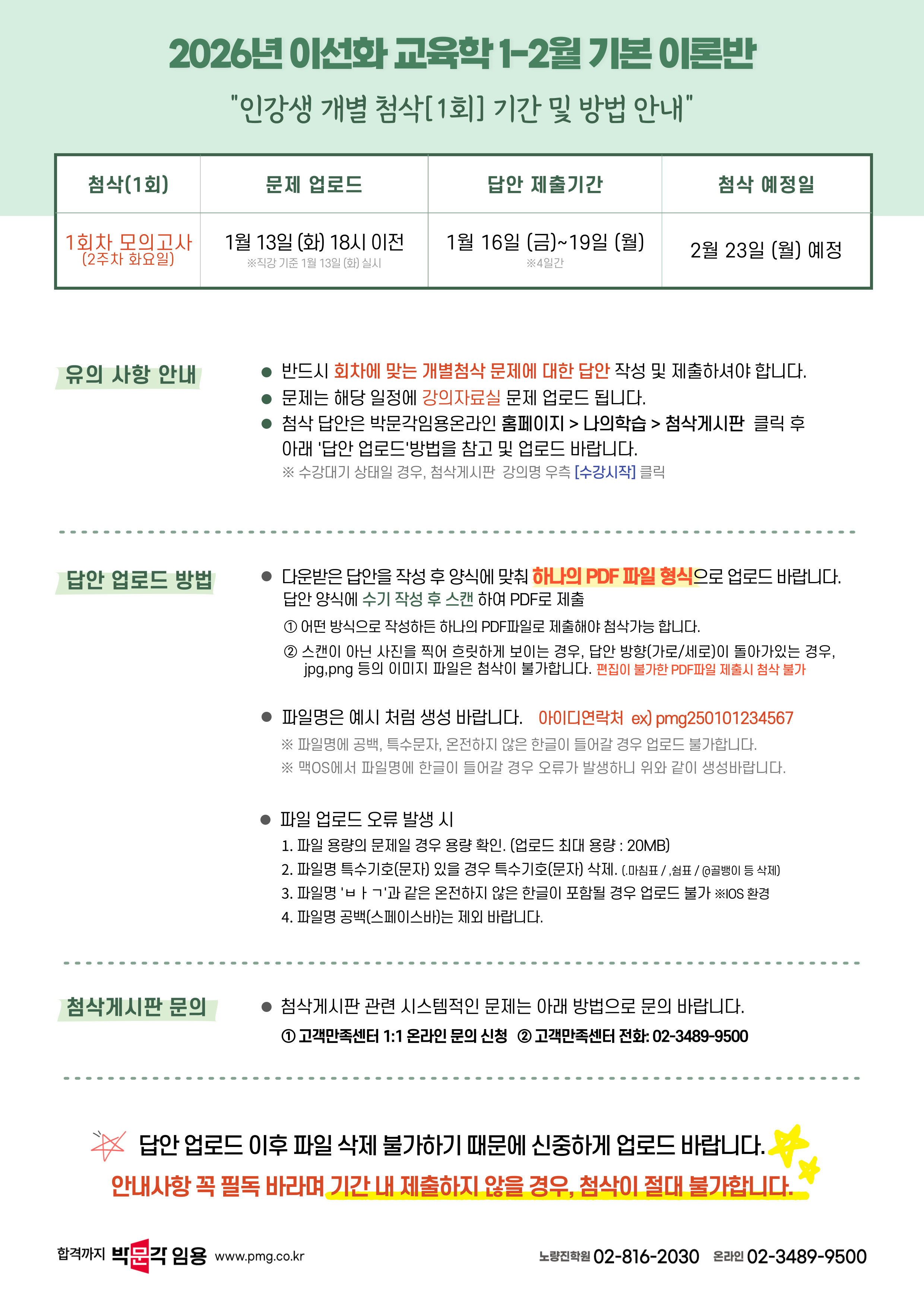 ๐ข(์ธ๊ฐ) 26๋ 1-2์ ๊ธฐ๋ณธ ์ด๋ก ๋ฐ ์ฒจ์ญ(1ํ) ์ผ์ ์๋ด!