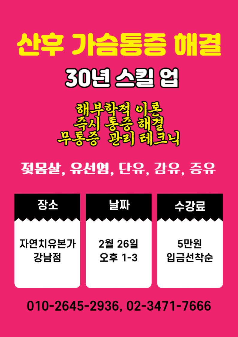 병원 연계된 자연치유본가 방배점에서 가슴마사지와 산후마사지를 받았습니다!