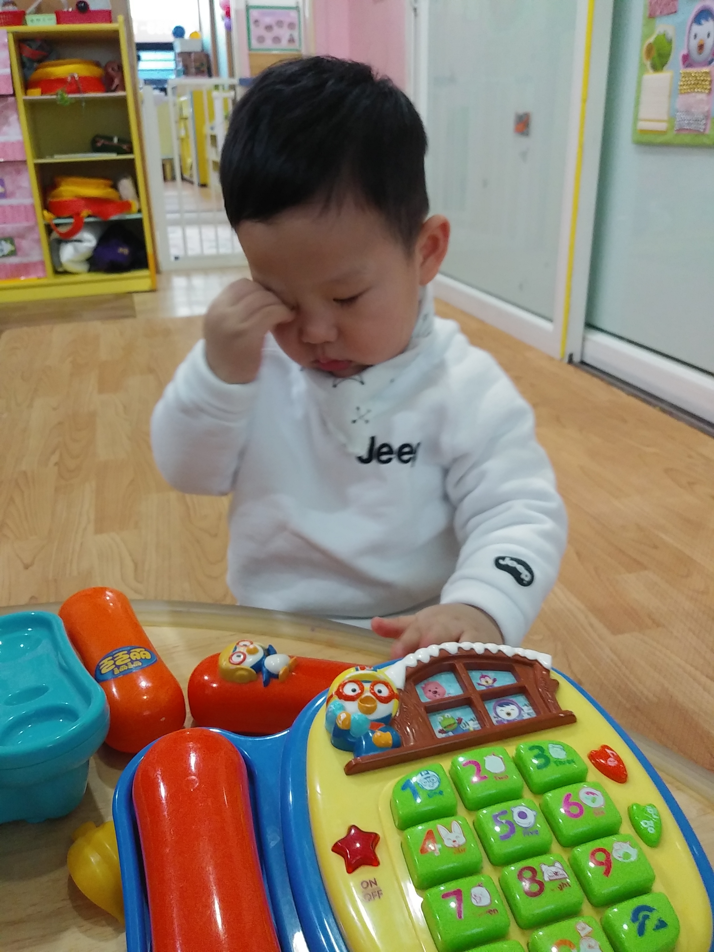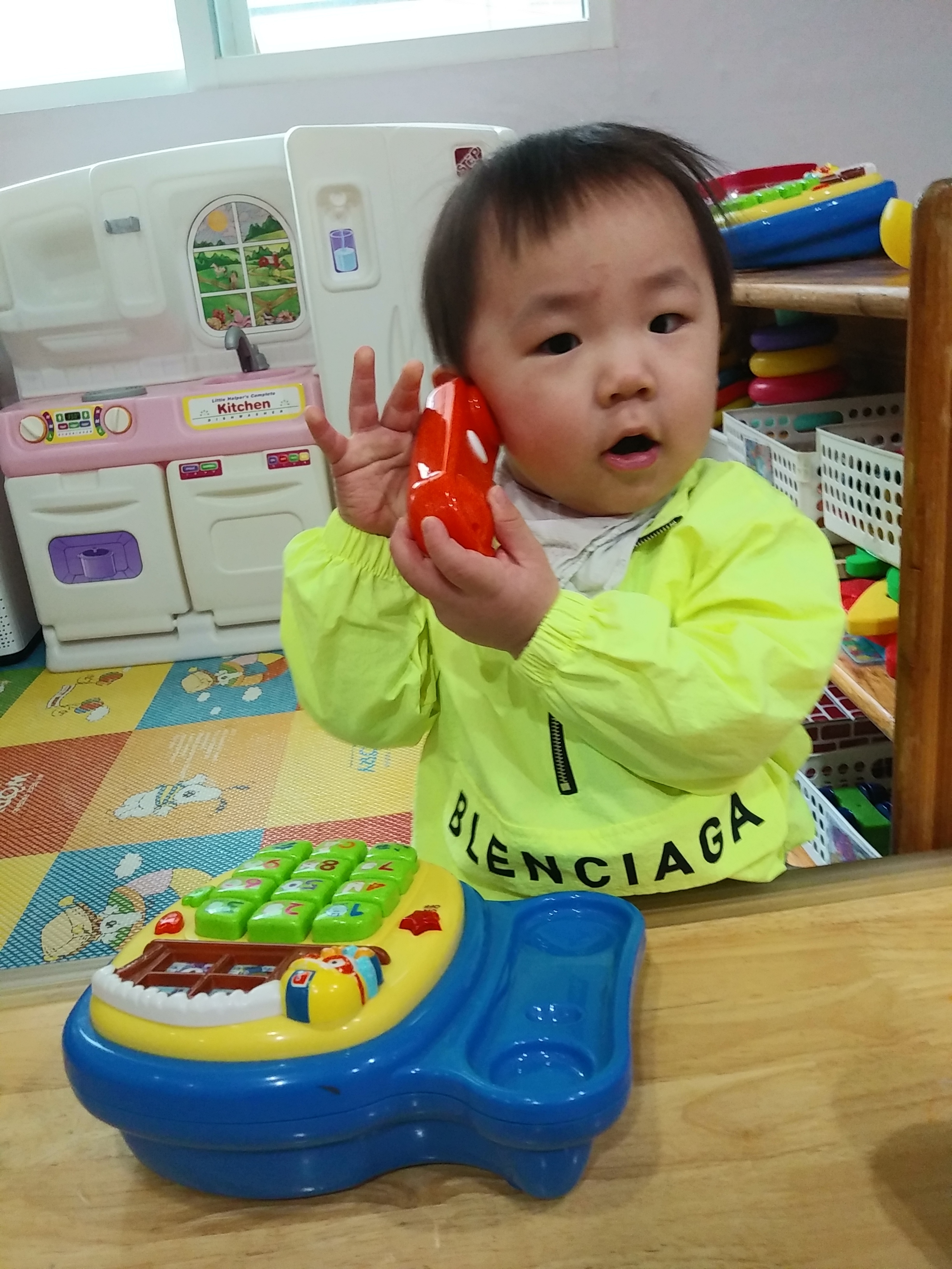 3월2주는 어린이집에 왔어요 두번째 활동으로 교실에 있는 다양한 놀잇감을 탐색하며 하랑쥬 인형과 함께 숨바꼭질도 하며 전화놀이를 함께 하여