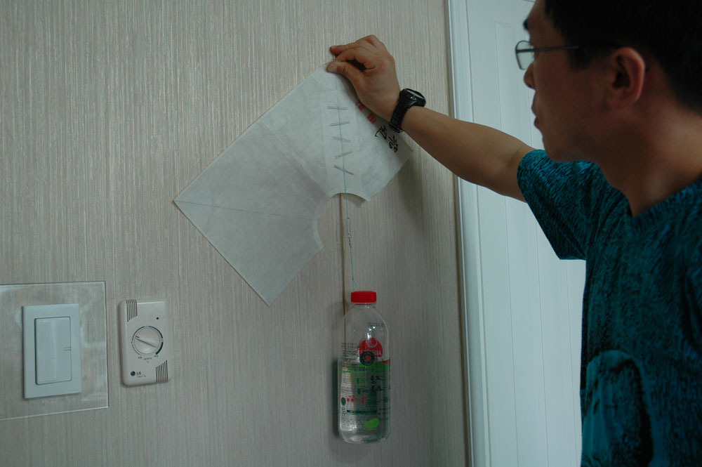 무게를 달고 벽에 댄다음 종이를 당겨보았습니다.