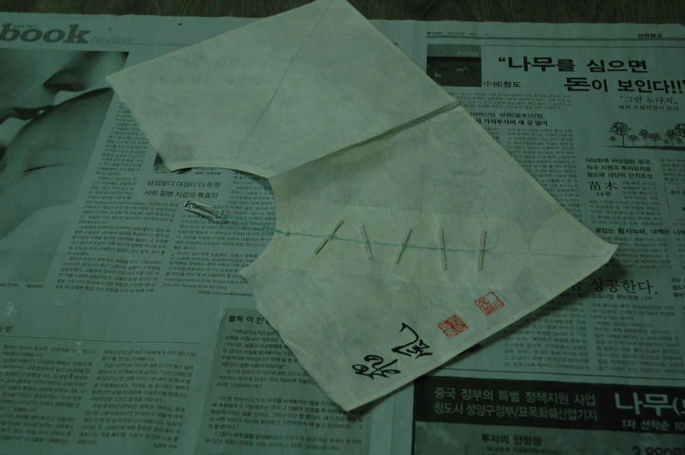 그래서 아랫쪽 장살이 있는쪽의 종이가 오른쪽에 위치하게 하고