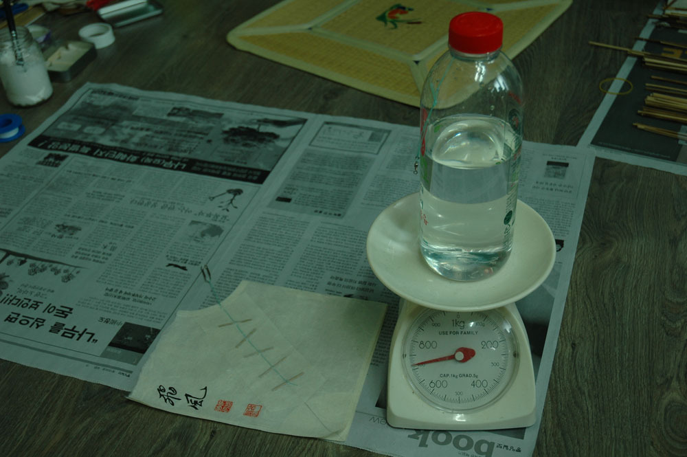 그래서 종이를 당기는 힘의무게를 달아보기 위해 위와같이 해체된 연종이를 이용하여