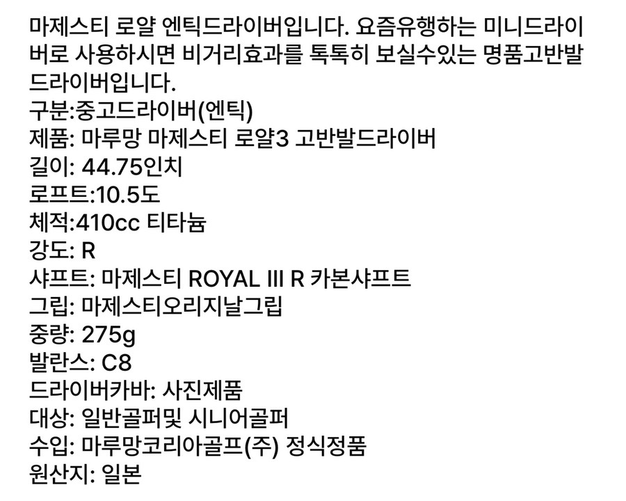 마루망 마제스티 로얄3 MAJESTY ROYAL3 드라이버