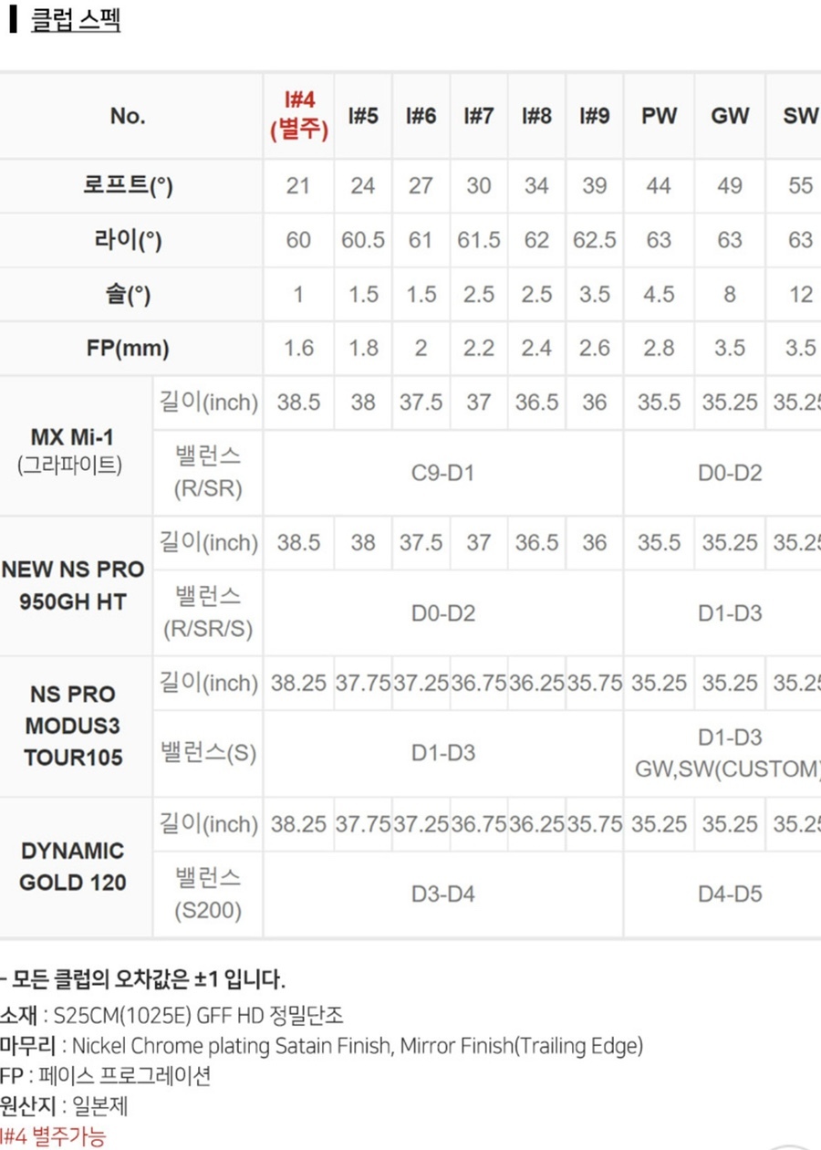 미즈노 MX-90포지드 NSPRO950 SR 아이언세트